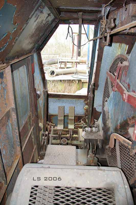Das ist ein richtig alter B323 (Löffelinhalt 2,3 cbm) aus den 50er Jahren, sogar noch etwas schwerer als der Menck M251 . Auch der Modag-Zweitakt-Motor ist die Original-Ausrüstung. Man hat den Motor irgendwann aber mal auf elektrische Anlassung umgebaut, ursprünglich wurde er mit Druckluft angelassen. Die auch ursprünglich vorhandenen Sprossenfenster sind leider weg. Die Steuerung erfolgte rein mechanisch.