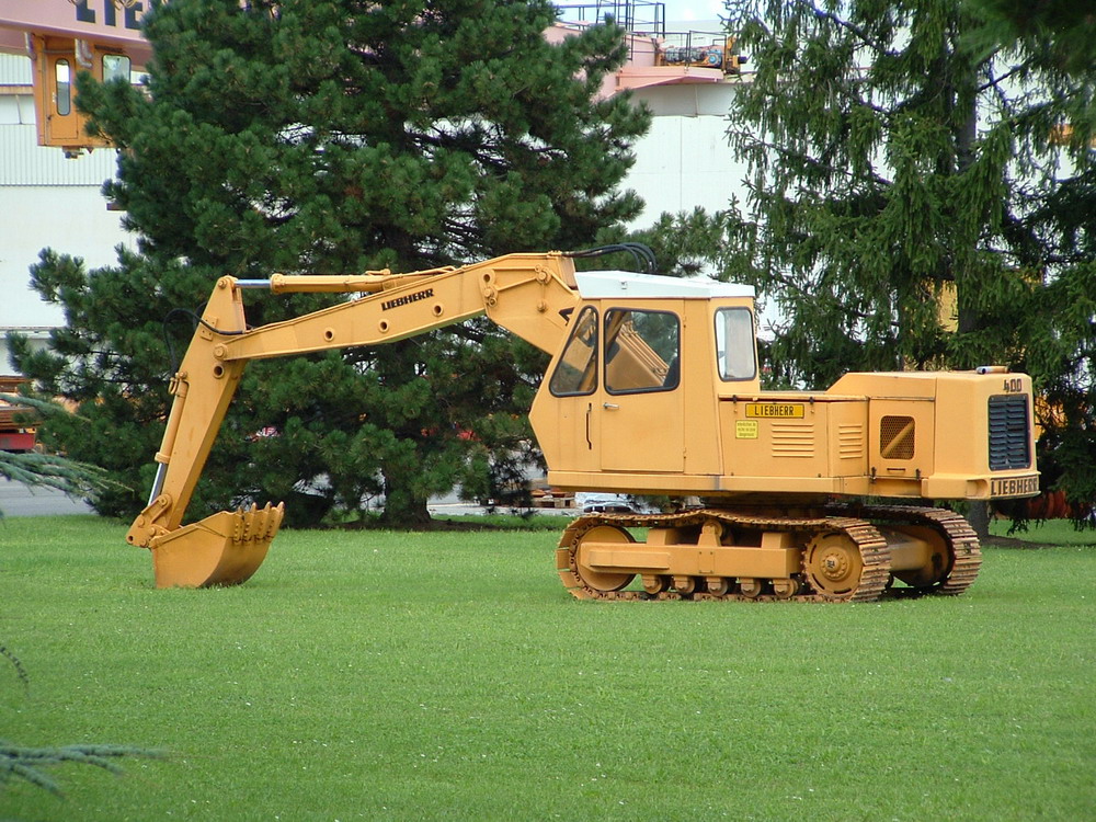 Der Bagger wird bei einem Landwirt eingesetzt, der Rest vom Ausleger mitsamt Schaufel war gerade erst demontiert worden, weil der Bagger für Kranarbeiten mit kurzem Ausleger benötigt wird.