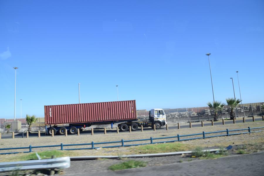 Als b-train fährt er dann 2 20 Fuss Container. (oder vielleicht sogar einen 20 Fuss und einen 40 Fuss Container