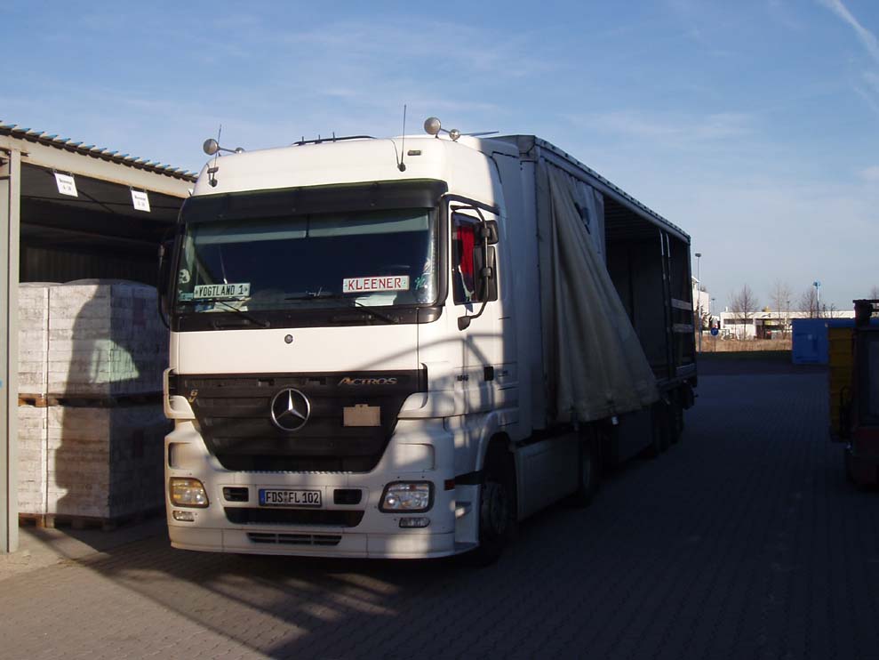 Das passiert wenn man dort entladen muss wo kaum Platz ist, denn das Fahrzeug muss immer schräg stehen damit es leichter geht...