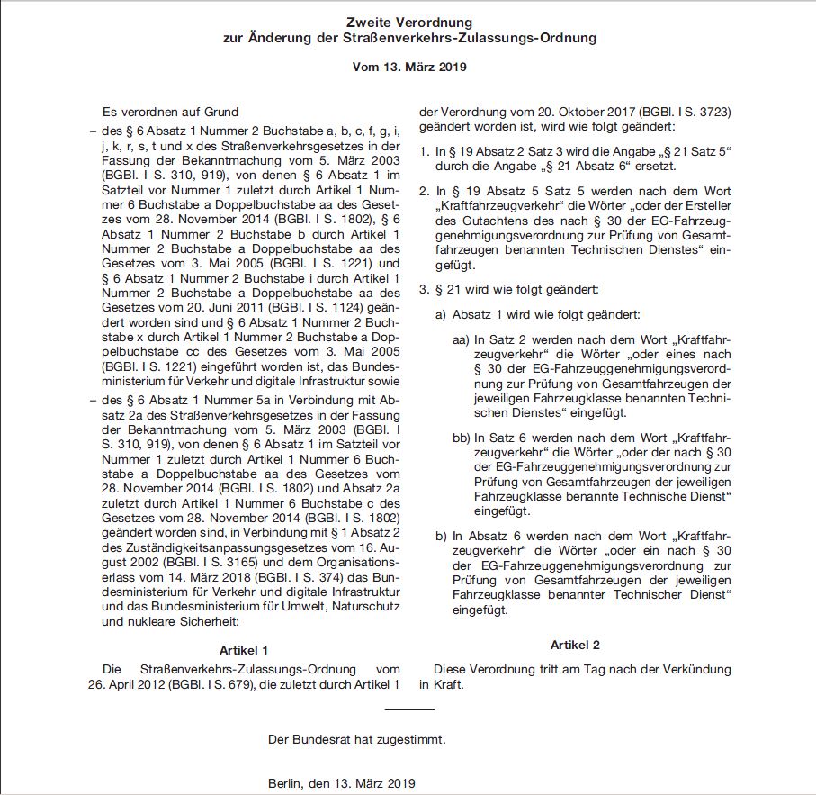 Aktueller Anlaß ist eine Änderung für den § 21 StVZO - dabei geht es um Einzelabnahmen und Vollgutachten für Kraftfahrzeuge.