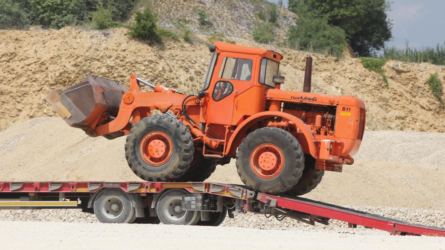 Ist das ein Kaelble Radlader im Hintergrund auf dem Tieflader?