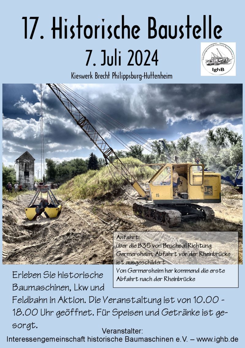 am kommenden Wochenende gibt es eine Neuauflage der historischen Baustelle. Wie im vergangenen Jahr ist der Freitag und Samstag unseren Mitgliedern und angemeldeten Teilnehmern vorbehalten, am Sonntag ist die Veranstaltung für alle geöffnet. Wie immer mit Speisen und Getränken.