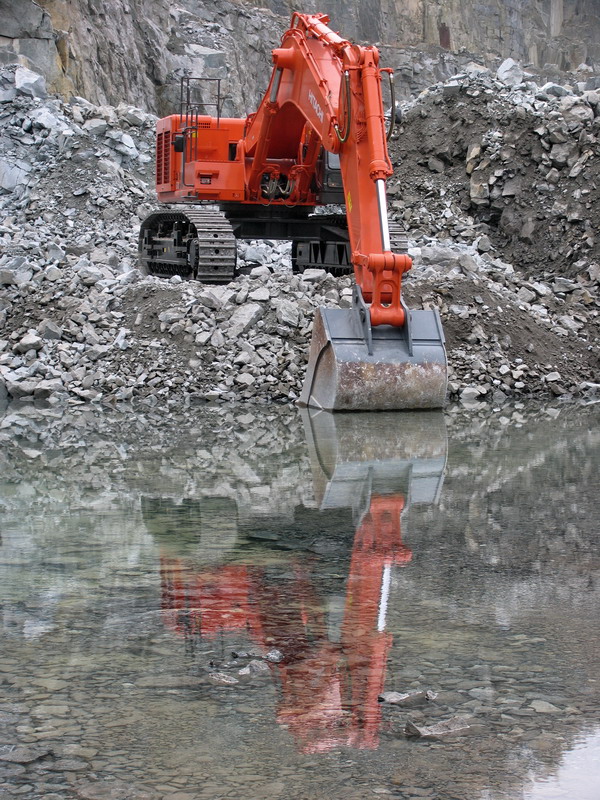 Dieser schöne Hitachi ZX670LCR-3 baujahr 2006 arbeitet mit seinen 68,4 Tonnen hoch oben in einem sehr steilen steinbruch hinter der schweizer grenze!!