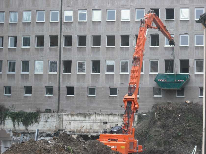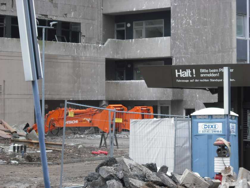 In Leonberg wird in nächster Zeit die "alte" Bausparkasse abgebrochen, oder auch gesprengt, da das Hauptgebäude sehr hoch ist und so wie ich das seh nicht von einem Bagger erreicht werden kann???