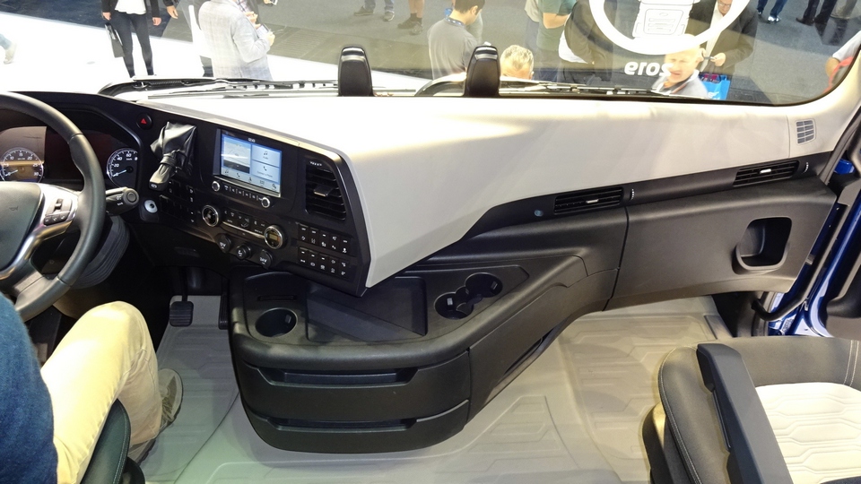 Aus meiner Sicht war die Präsentation der neuen Schwerfahrzeuge von Ford durchaus beeindruckend. Gebaut werden diese bei Otosan in der Türkei. Die beiden ausgestellten Sattelzugmaschinen waren aus der Vorserie und ein paar Details fehlten noch (Vorhänge zum Beispiel).