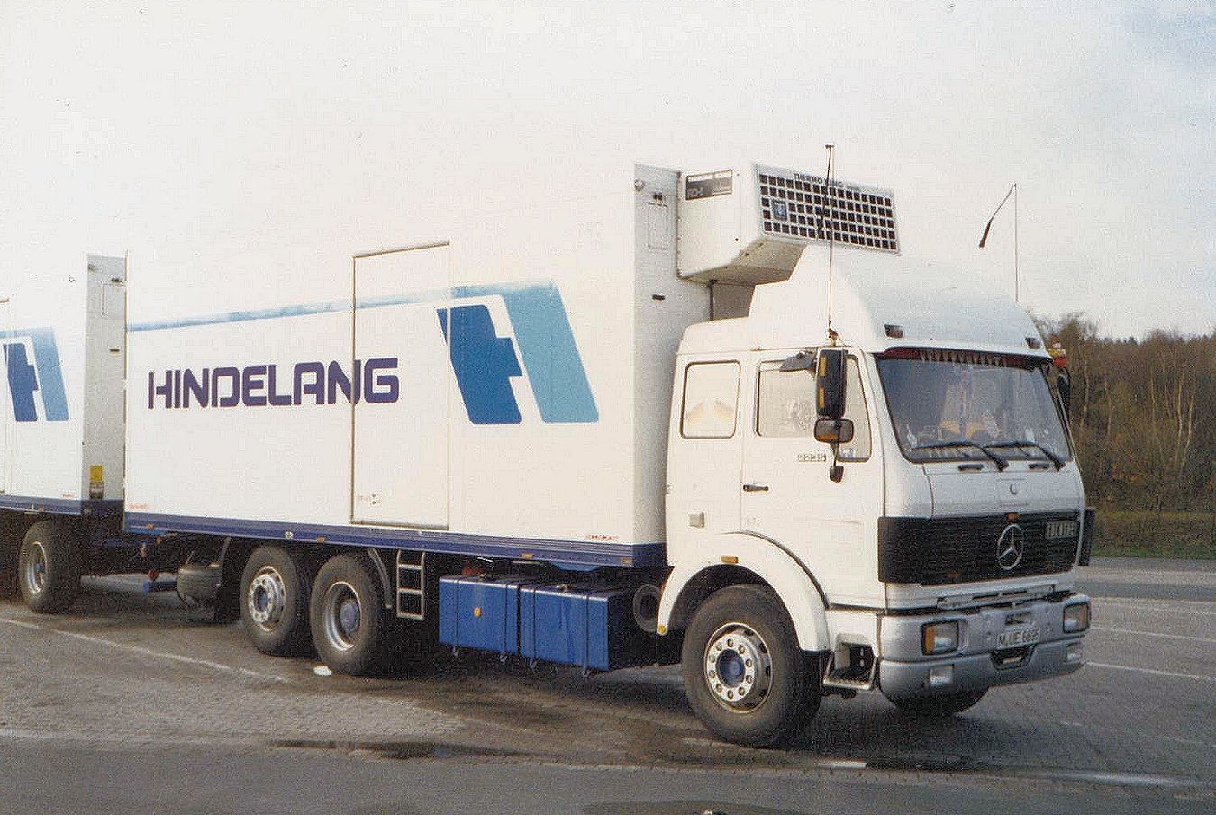 von Tim gezeigte Hängerzug, war auch dieser kurzgekuppelte Schmitz Kühlkofferhängerzug auf Basis eines Mercedes-Benz NG 2235 6x2 auf die Münchner Hindelang Niederlassung zugelassen.