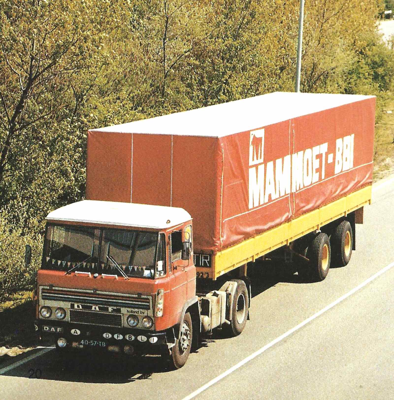 Das war der erste oder zweiter Volumenzug mit Tandemanhänger von Moeijes. War wenn ich mir nicht irre ein Kühlwagen. Der Schlafcabine war ab Werk zu bekommen, in zwei Breiten für die 2100-2300 Serie und für die 2800 Serie. Damals eine kleine Sensation