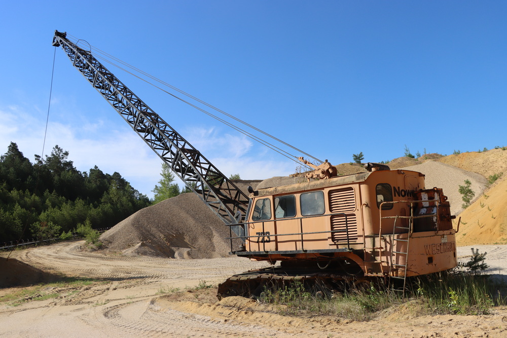 Der Weserhütte W18 Seilbagger der bis dahin auf dem Gelände stand und auch das Jahrhunderthochwasser 2013 überstanden hatte, musste nun von der Grube weichen.