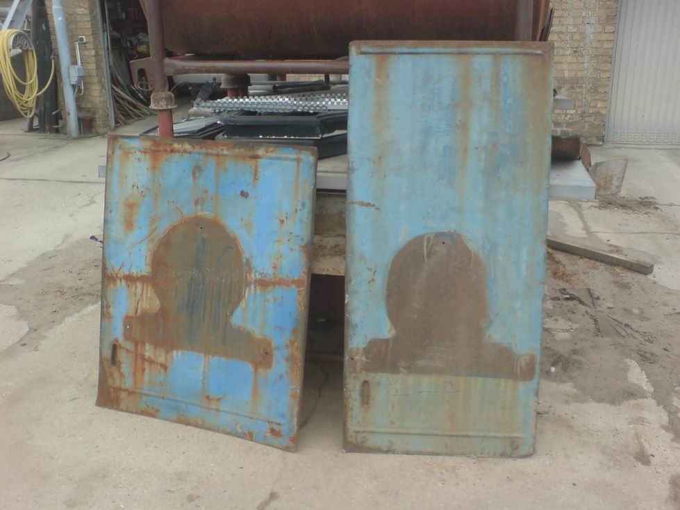 ...und natürlich ist es die letzten Wochen weitergegangen, leider vergesse ich meistens, solange es hell ist, Bilder zu machen, dennoch hier mal ein paar von den Teilen in der Sandstrahlkammer vor der Behandlung, die berühmten 5 Buchstaben habe ich entfernt, da darunter der Rost doch sehr nagte und es schliesslich dauerhaft saniert werden soll. So sieht man auf dem Dachteil trotz nunmehr demontierter Buchstaben den Schriftzug "Menck" aus dem Material Rost. Ich habe die Maschinennummer des Greifers mal demontiert, aber leider zerbrach sie in fünf Teile, da der Rost darunter das Gussmaterial doch sehr strapaziert hatte. Man beachte den Schriftzug "Altona Hamburg", der auf den Menck Schildern außen nur bis 1938 zu sehen war. Weiß jemand, wie die Schilder mit den fortlaufenden Nummern hergestellt wurden, gegossen oder geätzt? Wer stellt so etwas denn heute noch her, denn da fast alle offenbar dem Sammeltrieb anderer Fans einverleibt wurden, benötige ich Ersatz. Bei den beiden Türen kann man noch sehen, wo die Menck Schilder einst montiert waren, darunter war bemerkenswerterweise kein blau, sondern ebenfalls Rost, scheinbar war die verarbeitete Lackqualität nicht so besonders und/oder die Farbschicht dünn. Ich habe mittlerweile schon eine ansehnliche Kollektion an lichtgrauen "Neuteilen", wenn auch die erste Charge ihre blaue Schicht bekommen hat, gibt's demnächst wieder Bilder.