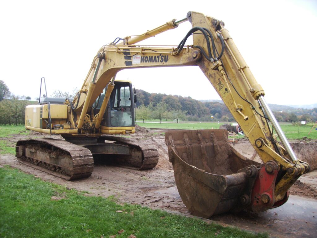 PC 210LC eines Forstunternehmens, sehr interessant dass Anbaugerät für diesen Bagger, eine Rodungsfräse die durch einen extra Deutz Diesel Motor angetrieben wird !!