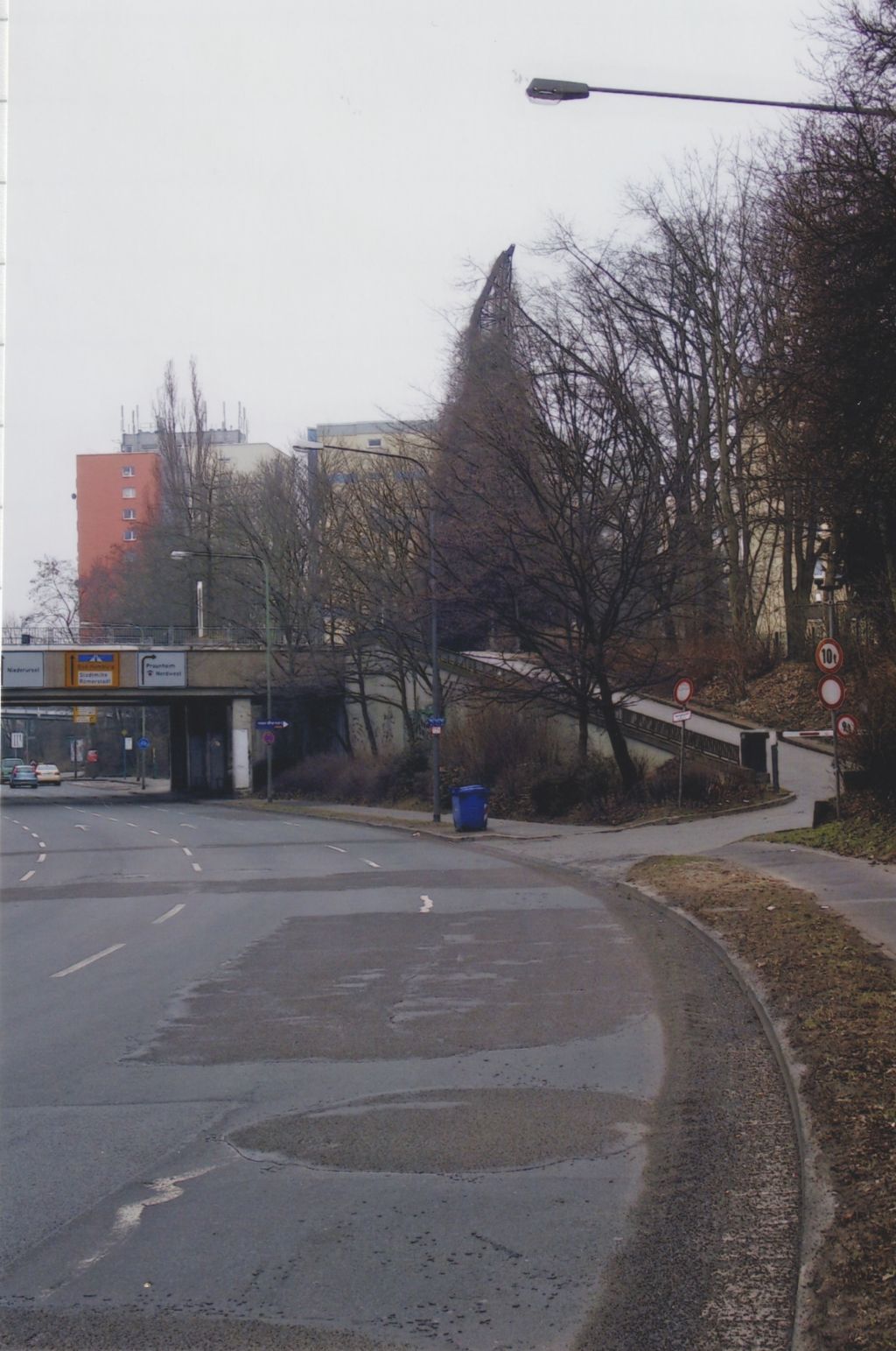 Das Fragment steht in der Frankfurter Nordweststadt über dem Erich-Ollenhauer-Ring an der breiten Fußgängerbrücke zum Nordwestzentrum und ist zu Fuß über die Bernadottestraße zu erreichen.