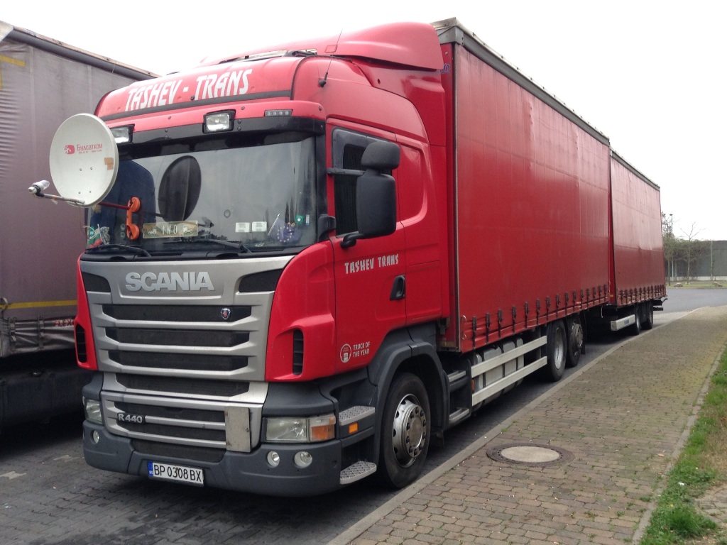 Diesen Scania R440 von TASHEV-TRANS habe ich im Herbst 2014 auf dem Autobahnrastplatz Michendorf an der südwestlichen A10/Berliner Ring aufgenommen.