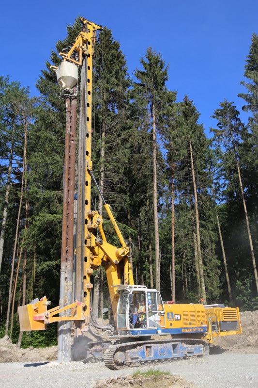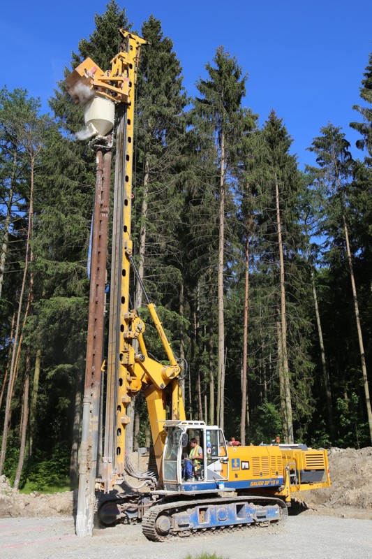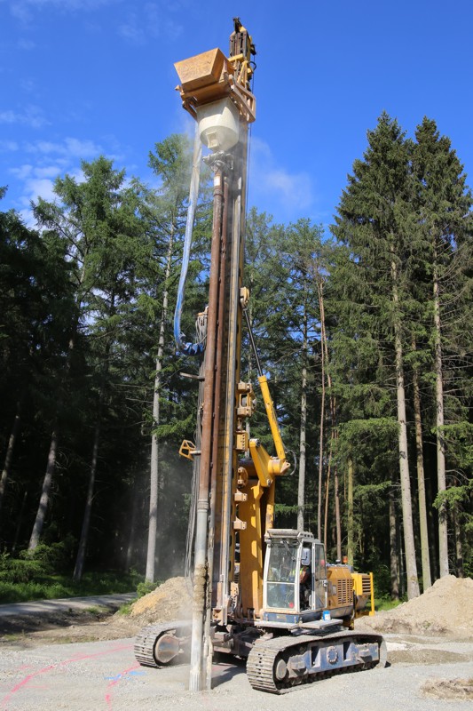 Die Maschine drückt ein Rohr in den Boden bis der Wiedersatnd zu groß wird beim Herausziehen wird der Hohlraum mit Schotter aufgefüllt - im Windpart war die Tiefe der Schottersäulen zwischen 3 und 9 Meter tief. Diese 72 Kiessäulen pro Windrad stellen sich er das der Untergrund gleichmässig Lasten aufnehmen kann.