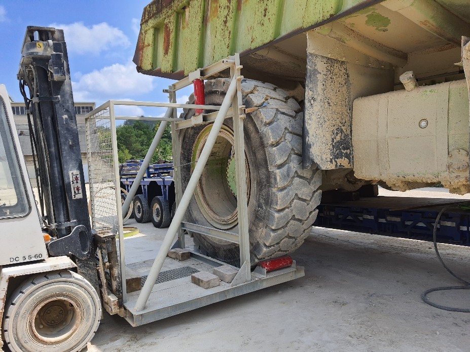 Er fragte mich ob ich ein Photo hätte wo der terex 3311 auf dem tieflader steht wo alle Reifen noch dran wären.
