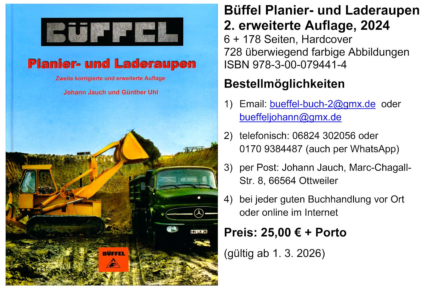 ich freu mich riesig, dass einem erfahrenen Baumaschinenkenner und Autor wie Dir mein Büffel-Buch gefällt. "ultimativ" trifft´s gut, eine dritte Auflage wir´s sicher nicht geben, weil in der 2. Auflage wirklich alles wichtige über Büffel-Raupen drin steht und mehr Details gibt´s einfach nicht mehr.