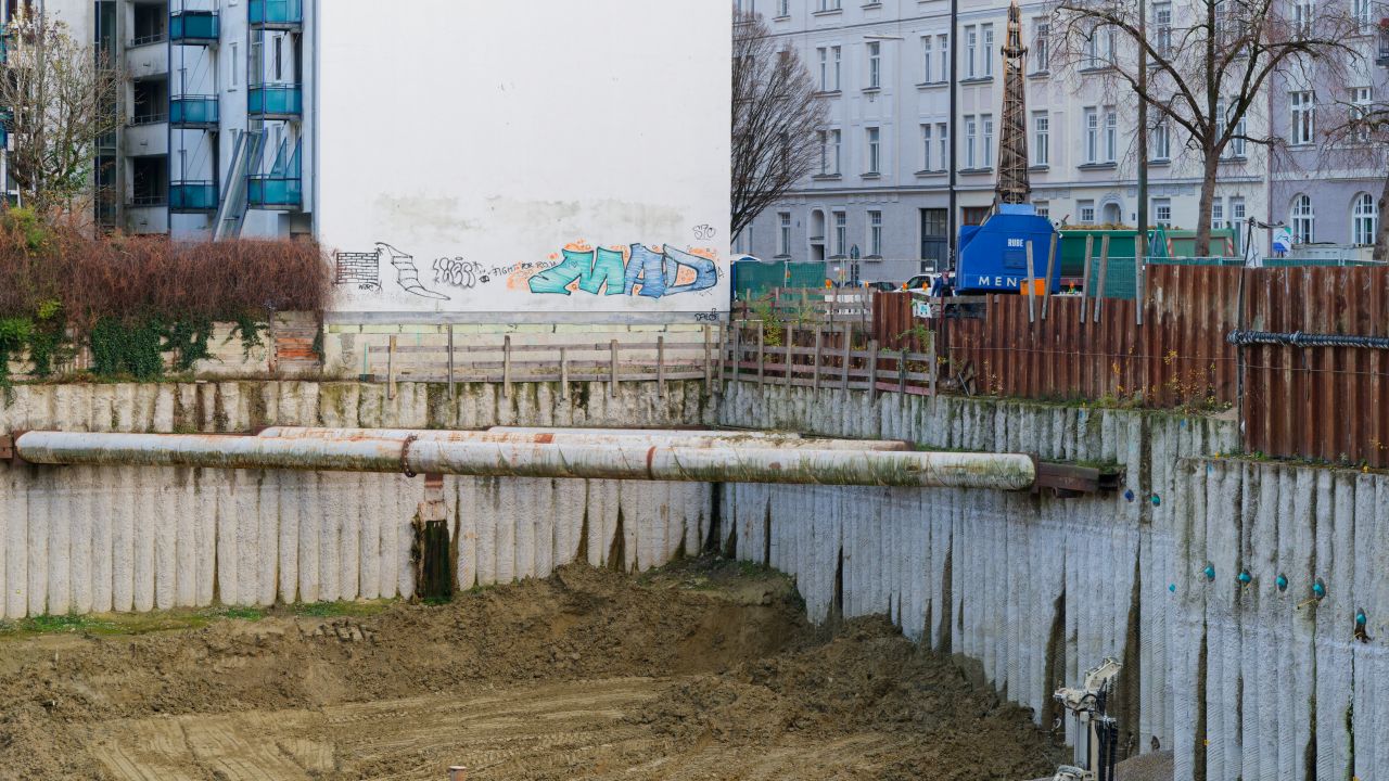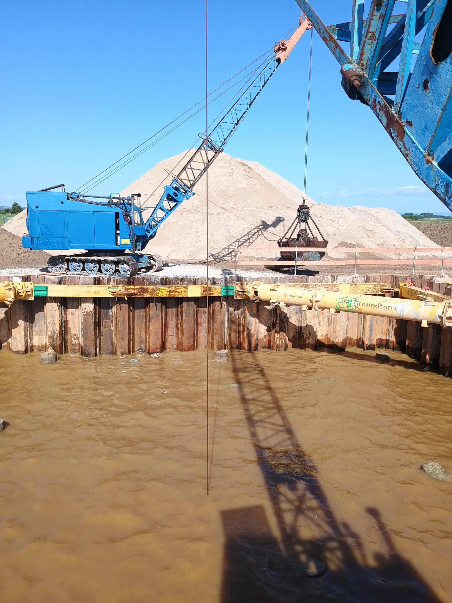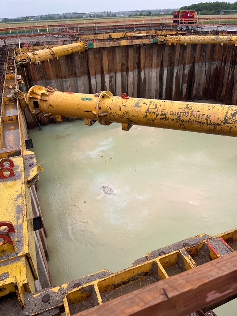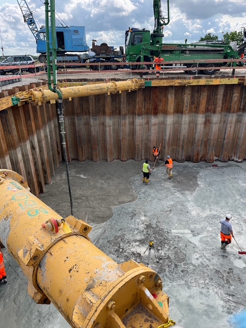 Nachdem der Schacht seine Endtiefe erreicht hatte, wurde die Sohle unter Wasser einbetoniert.