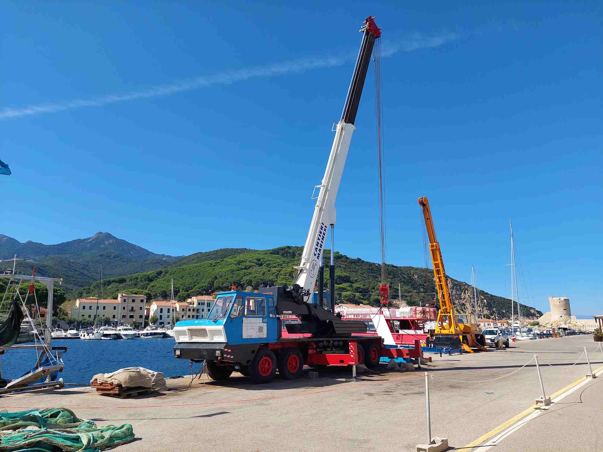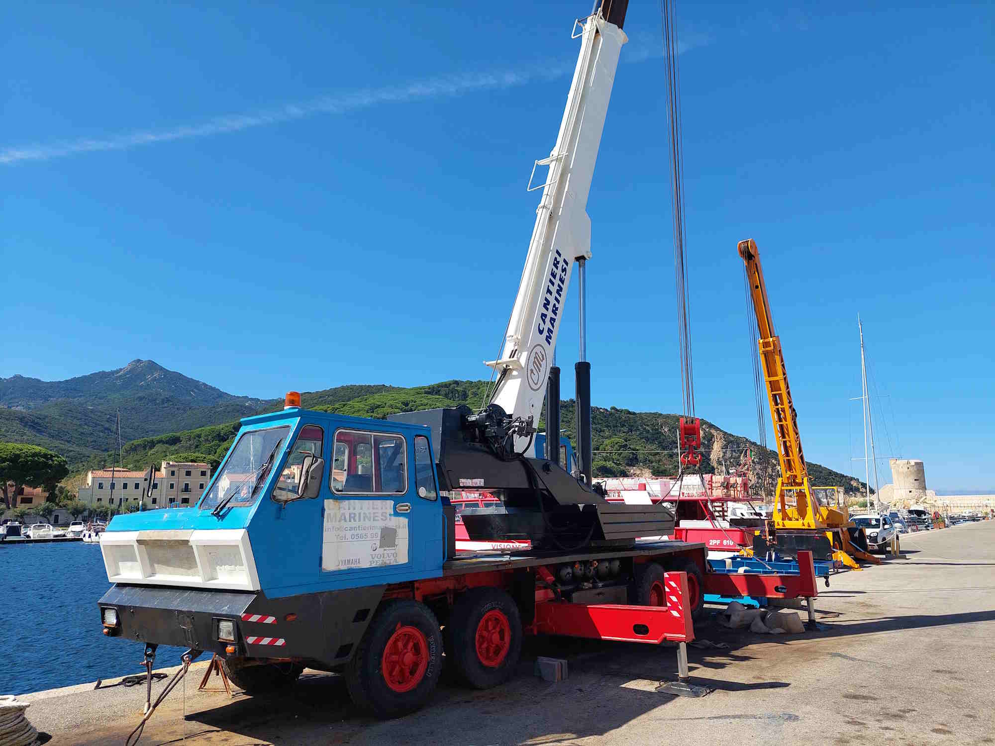 wenn es noch von Ineresse ist, der gelbe Kran ist ein ORMIG, der blau / weiße ein RIGO. Bei der genauen Typenbezeichnung bin ich mir nicht sicher.