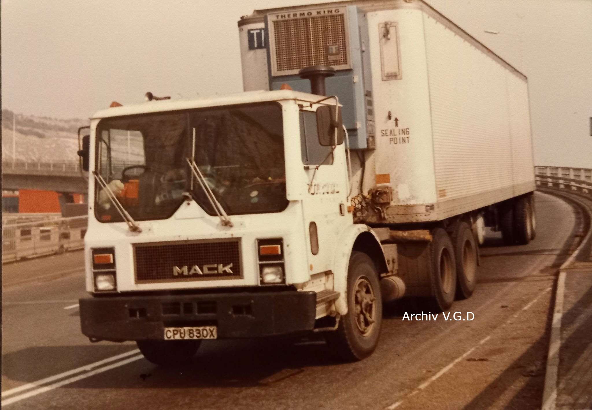 Wow, einen Mack MR als Zugmaschine habe ich bis jetzt auch noch nicht gesehen. Bisher kannte ich den nur mit Feuerwehr-, Müllabfuhr- oder Betonmischeraufbau. Die Zugmaschine ist Baujahr 1982 prost