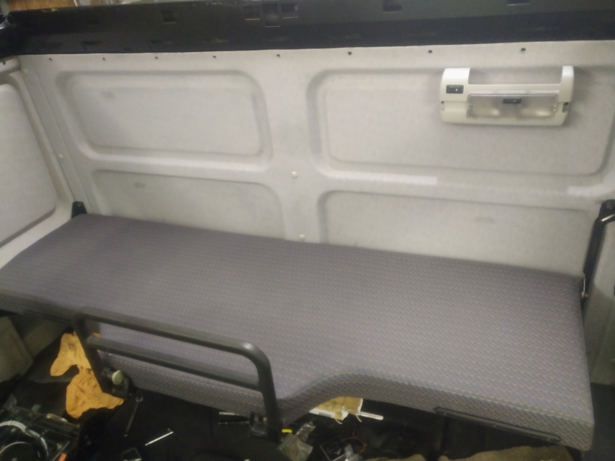 Mit Matratze und Stoff sieht es eingebaut nun so aus.