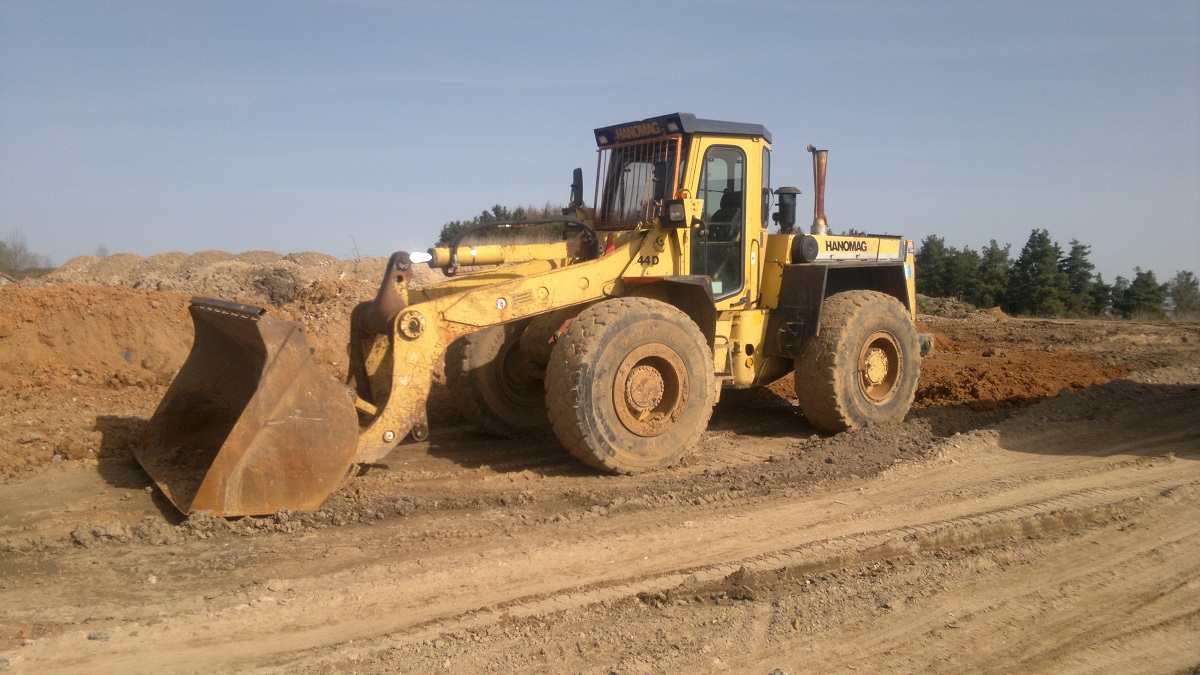 Hanomag 44 D Bj. '94 mit Hochkippschaufel im vergangen Herbst bei einem Händler.