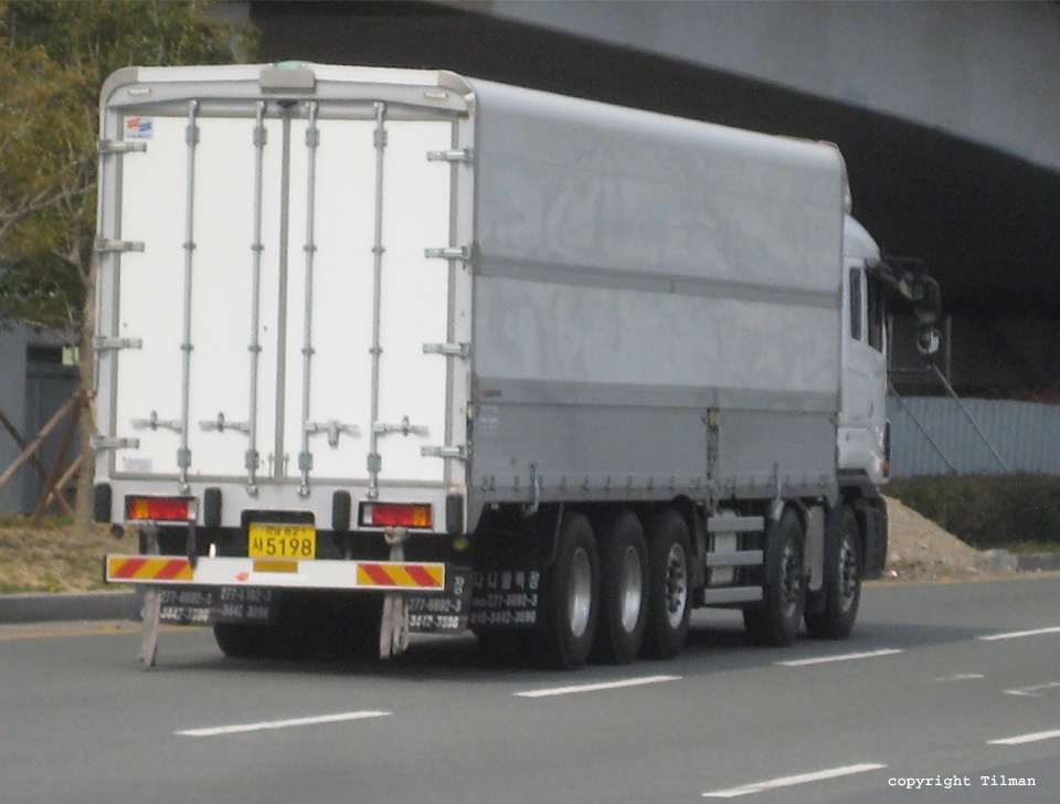 ich frag mich, warum es diese Dinger nicht bei uns gibt. Sie sehen für bestimmte Ladungstypen gar nicht so unpraktisch aus. Na ja, und mit preiswerten chinesischen Reifen (?, Hankock) ist es mit dem Reifenabrieb der letzten ungelenkten Achse ja verkraftbar.