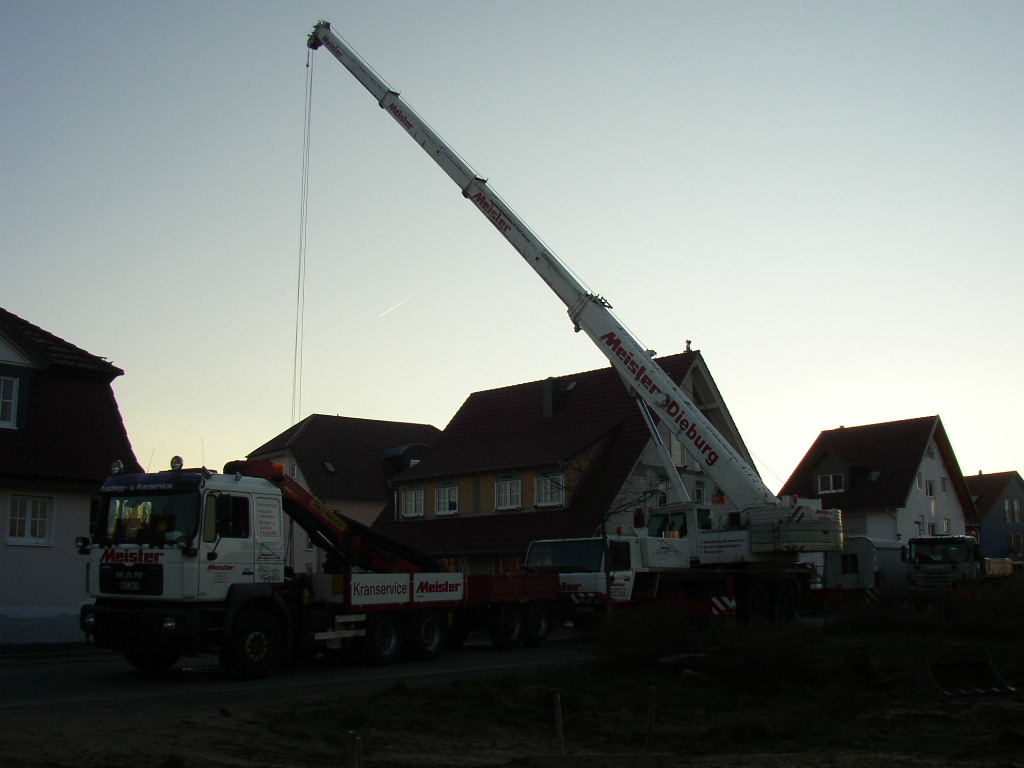 Hier ein Faun Mobilkran beim versetzen von 2 Betonzisternen von je 6,5 to Gewicht.