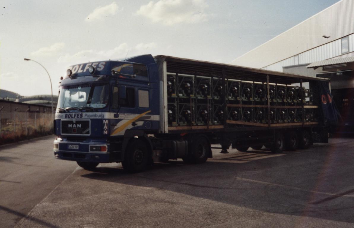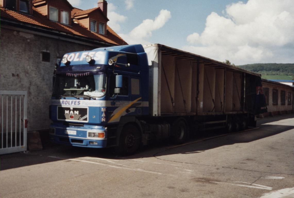 Und auch heute Morgen sorgte die Firma Rolfes wieder mit zwei Satteln dafür, daß der Nachschub an Schotter nicht zum erliegen kommt. Der junge Mann, der da so freundlich aus dem letzten Bild lugt, ist übrigens ein in diesem Thread nicht ganz unbeteiligter Schreiber...