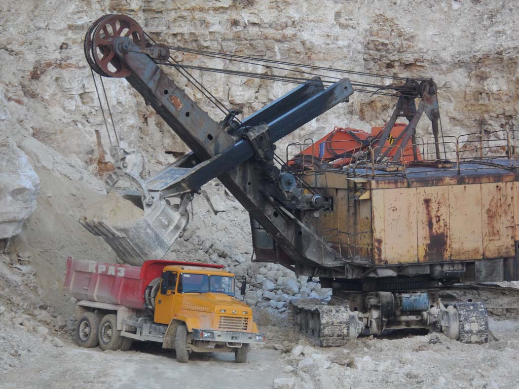 In saal läuft ein Komatsu Wa800 & ein Cat 990H mit ein paar 775