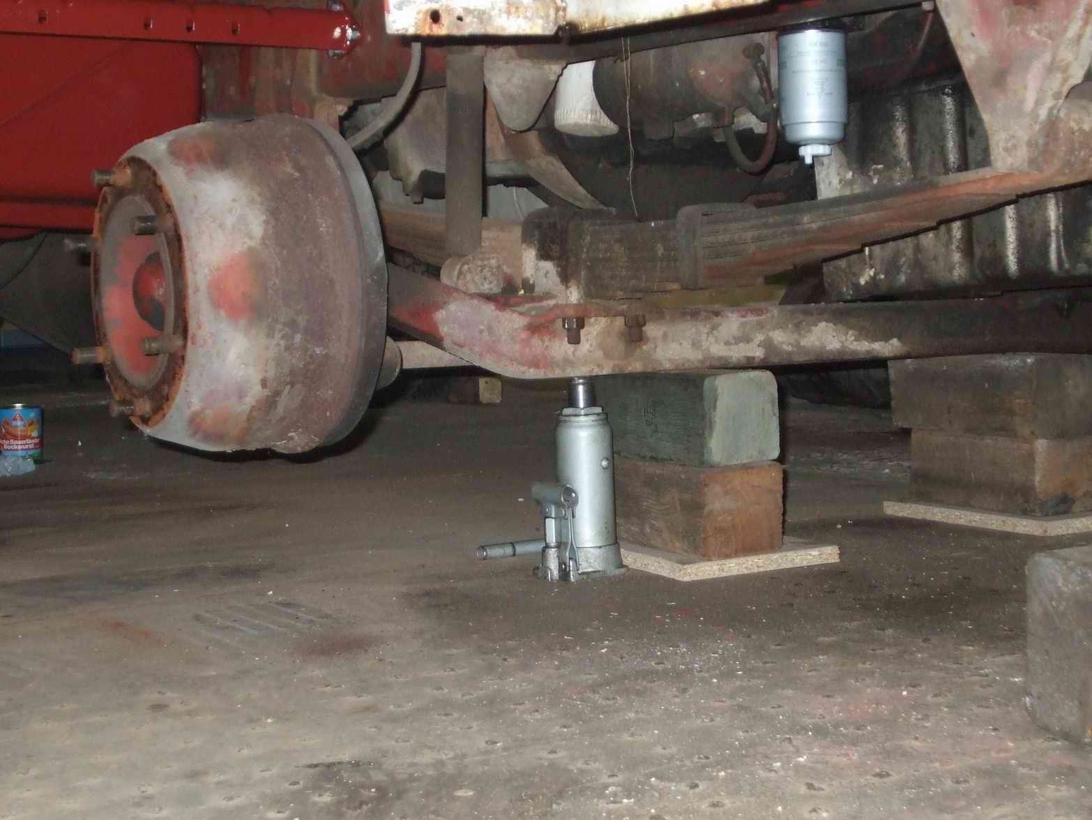 Das Auto hängt vorne leicht nach links. Ich habe bereits mit einem Fachmann für Blattfedern gesprochen, der wird mir das wieder richten.