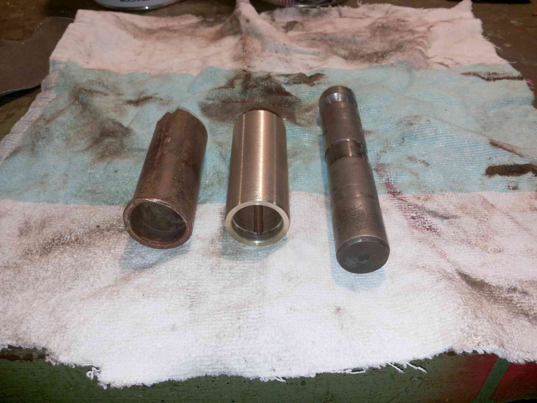 Die Lager für die Bolzen müssen beide neu, eines ist total ausgeschlagen. Kann ich auch selber machen, Lagerbronze habe ich noch da.
