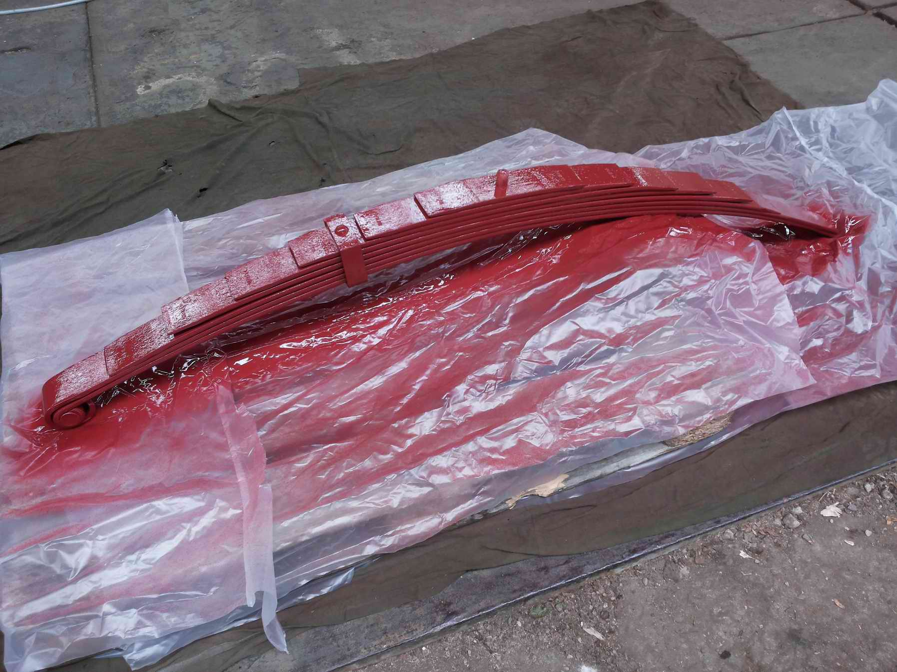 Konnte heute dann noch eine Feder lackieren, die Unterseite kommt morgen dran. Die zweite Feder ist auch schon mit neuer Buchse versehen, da war die Bohrung besser, ich mußte nichts ausschleifen. Die wird auch morgen lackiert.