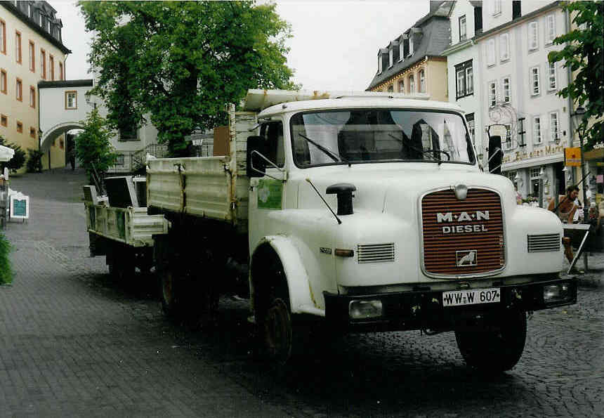 Ein MAN 17.220 HK aus dem Westerwald auf dem Marktplatz von Hachenburg. Man beachte den Luftfilter auf dem rechten Kotflügel. Weiterhin ein schönes Wochenende