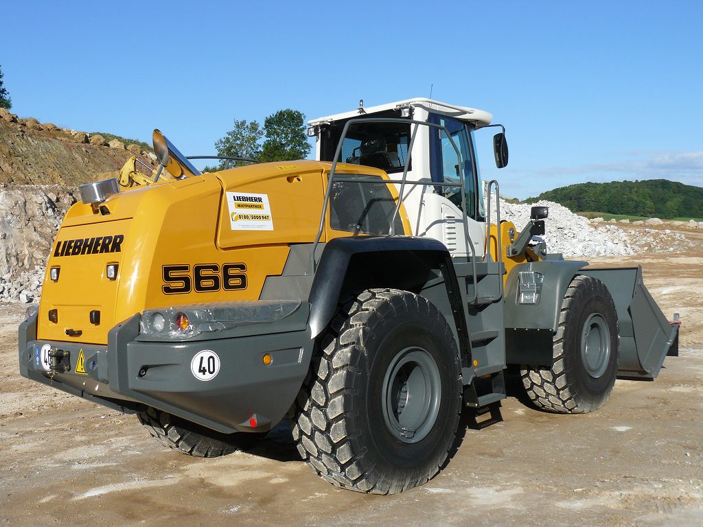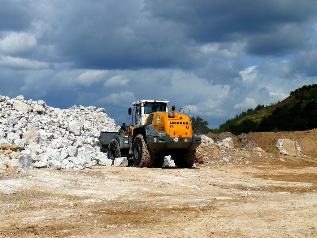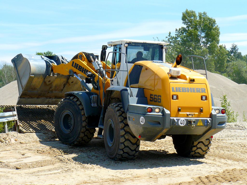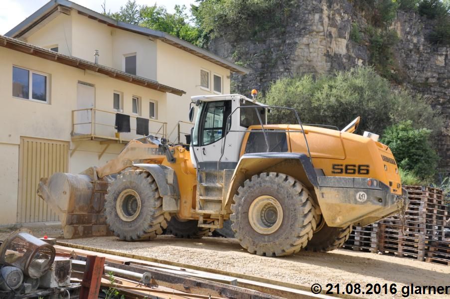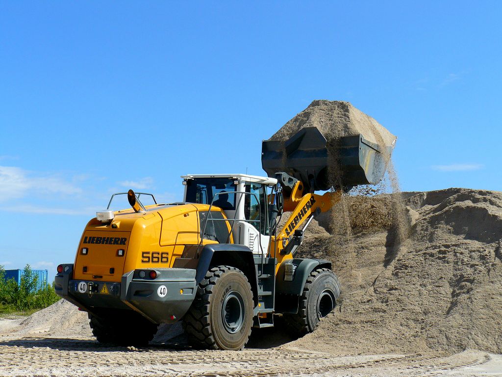 Der L566 arbeitet in einem Kieswerk und hat die Aufgaben den Kies an der Wand abzubauen und in einen Trichter zu kippen, Material zu mischen und LKW´s zu beladen.