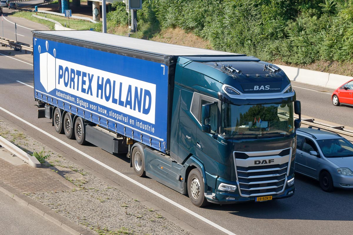 Ein DAF von van der Bas Transport, unterwegs für Portex Holland (Saarbrücken, 2025):