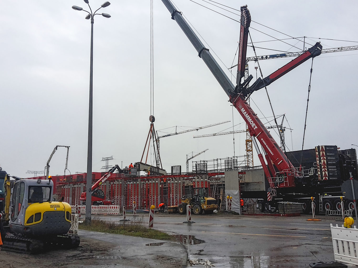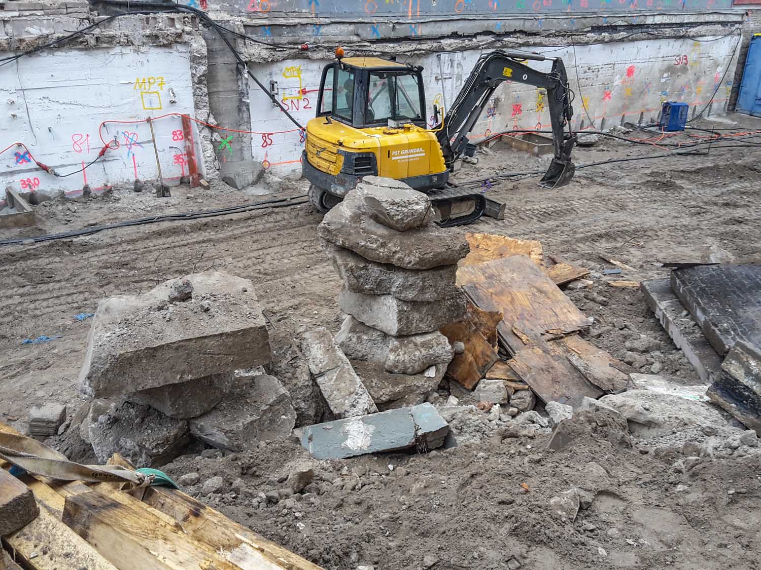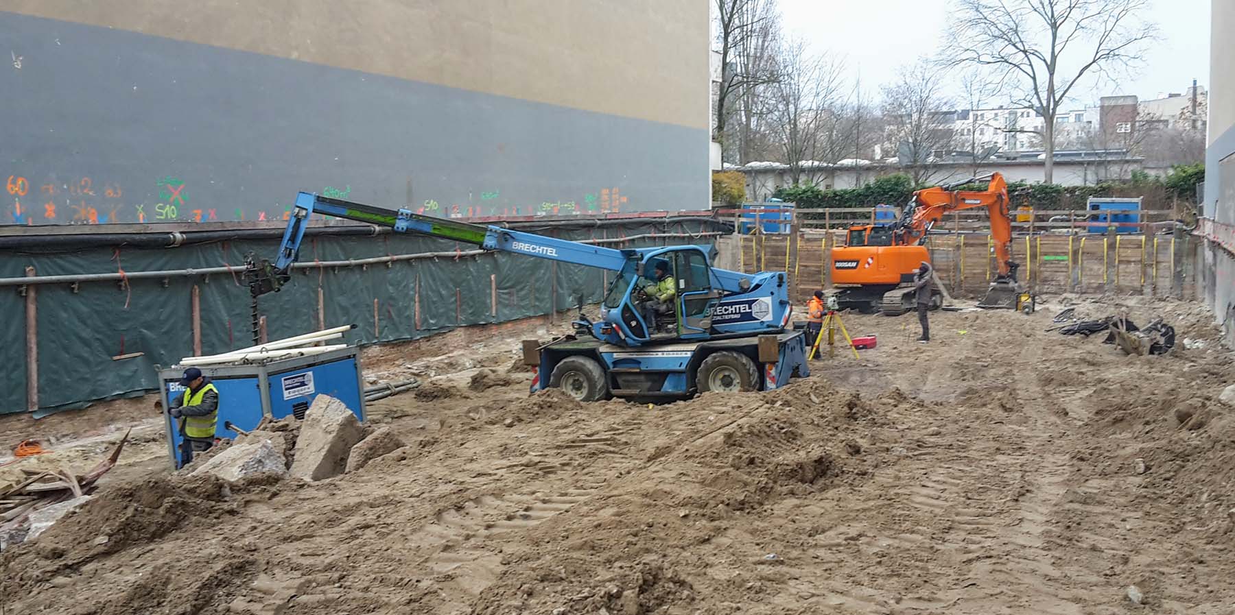 Dort sieht man auch den Aufbau der blauen Wasserrohre für das Grundwasser-Management.