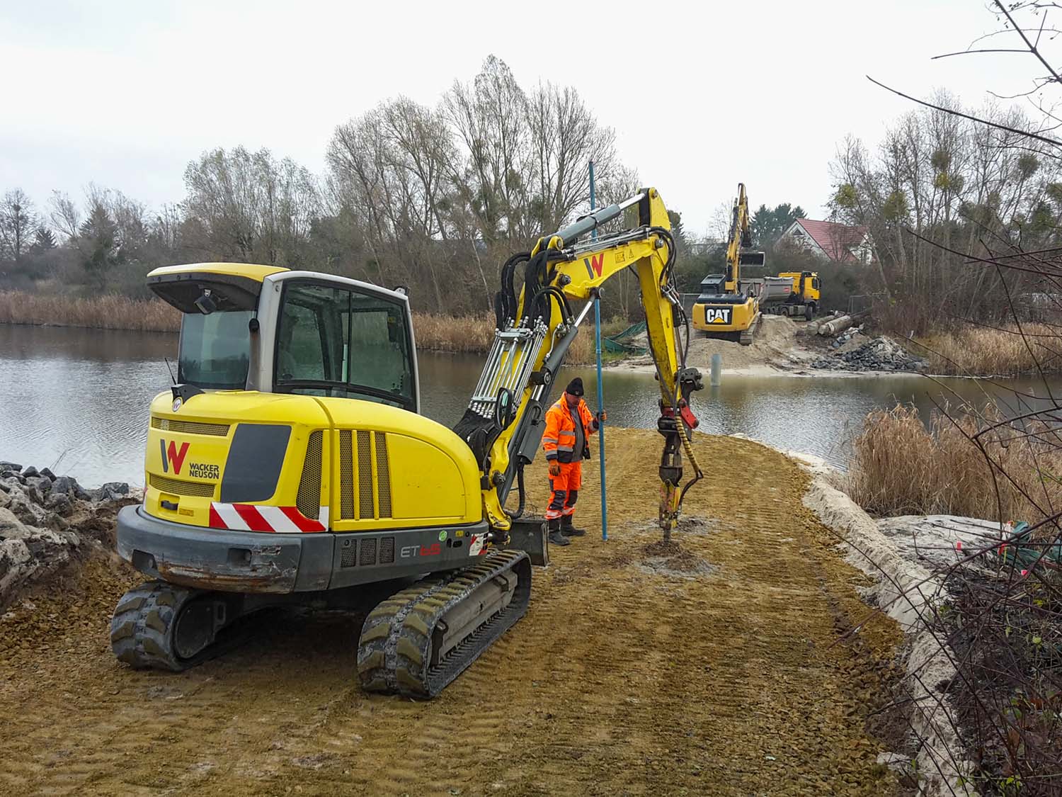 Vor 3 Wochen haben wir schon am anderen Ufer diese "Tastbohrungen" gemacht, dort haben die Arbeiten bereits begonnen.