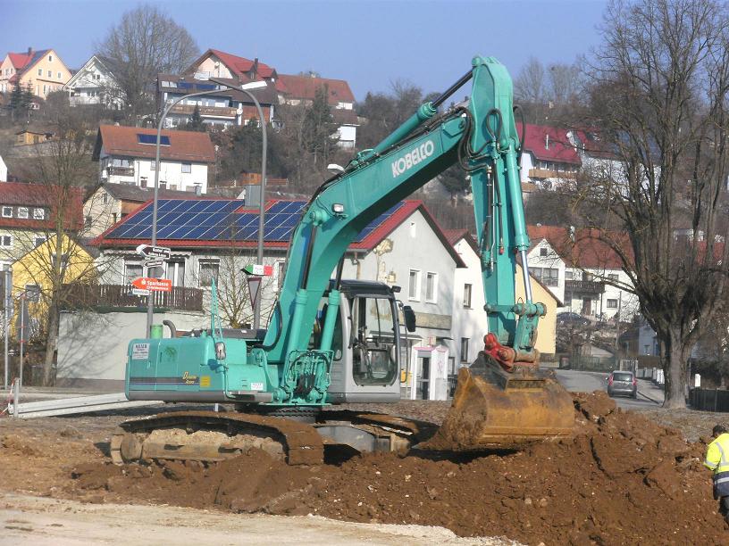 Kobelco SK 210 LC im März 2011 beim Baugrubenaushub in Kölln.