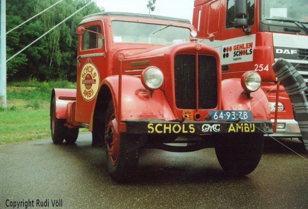 So konnte ich im Juni 2009 beim TRAL-Meeting im Holländischen Landgraaf diese nette GMC Sattelzugmaschine aus den 30er Jahren entdecken. die sich zwischen die aktuellen DAF-Sattelzugmaschinen der Spedition Gehlen-Schols duckte klatsch