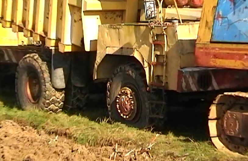 Hier geht die Geschichte weiter : Beim dritte Besuch habe ich den Löffel und Stiel von den O&K RH14 demontiert und versucht um den lehre Vorderreifen von Faun nummer eins wieder auf Druck zu bringen, das hat aber nicht geklappt : die 3 teilige Felge mit rubber O-Ring Abdichtung hat kein Luftdruck mehr behalten . Dann habe ich entschlossen um nicht mehr Arbeit an die Reifen zu spendieren und um das Fahrzeug eventuel mit Hilfe von ein Radlader zu verladen . Auf das erste Bild ist zu sehen das die Muldenkipper und der O&K Bagger nochmal die Erweiterung von die Hofmair Kiesgrube weichen mussten . Das Transport ist gemacht worden mit einen fast neuen Volvo FH16 6x4 750PS Zugmaschine mit Tieflader von die Firma Bierings Schwerlast Spedition aus Holland .