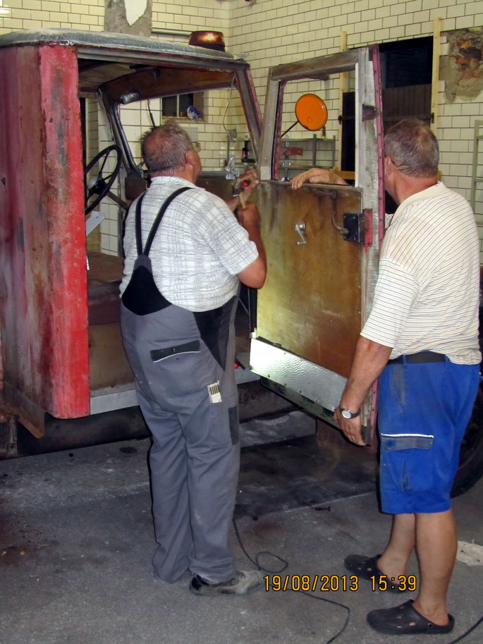 Dass das Fahrerhaus ein Holzrahmen hat, bedarf ja wohl keiner gesonderten Erwähnung. Also Blechbeplankung runter und ALLES vermessen. Ich wette, der Rahmen muss mindestens teilweise- wenn nicht gar komplett neu gemacht werden!