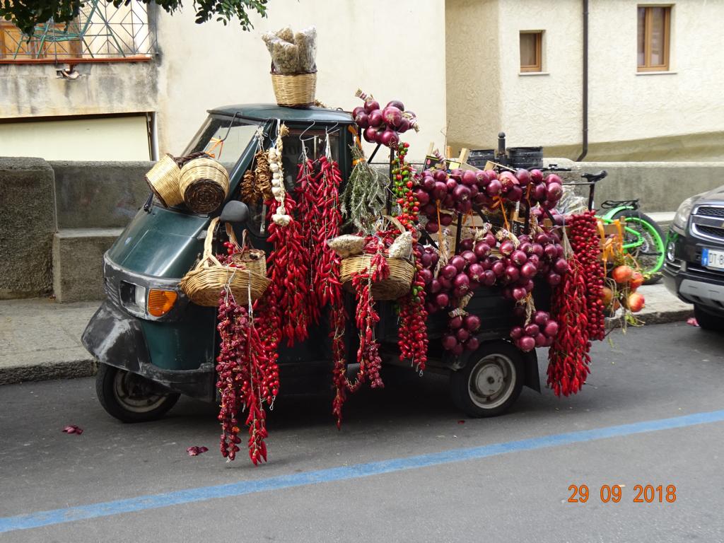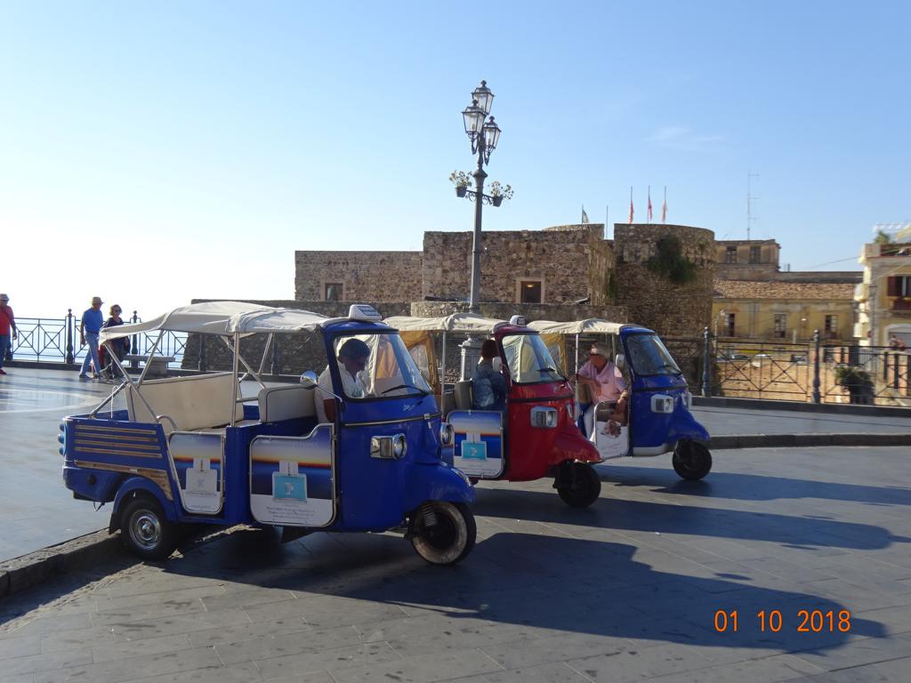 hier weitere Ape als Touristentaxi in Pizzo/Kalabrien. Dazu ein Werbeträger für ein Obst- und Gemüsegeschäft in Tropea.