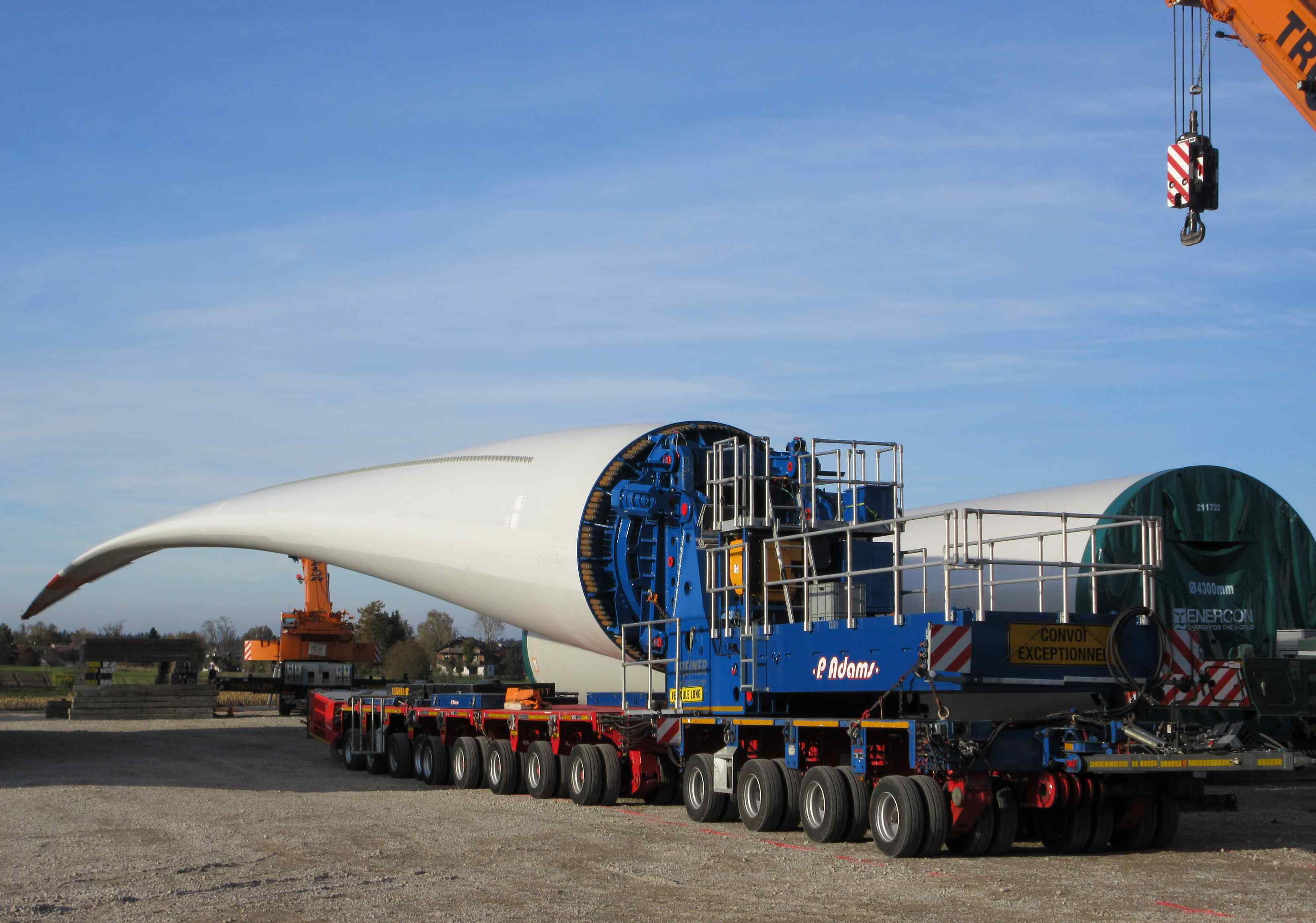von Belgien bis in den Süden von München. Selbstfahrer + 2 Zugmaschinen zum Transport von Windrad-Bauteilen