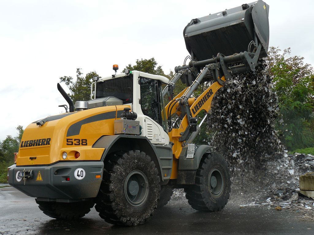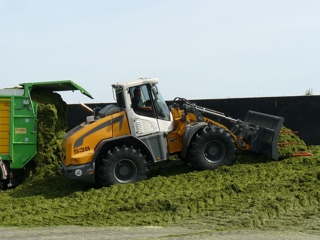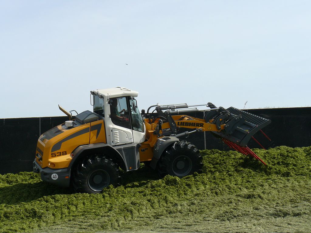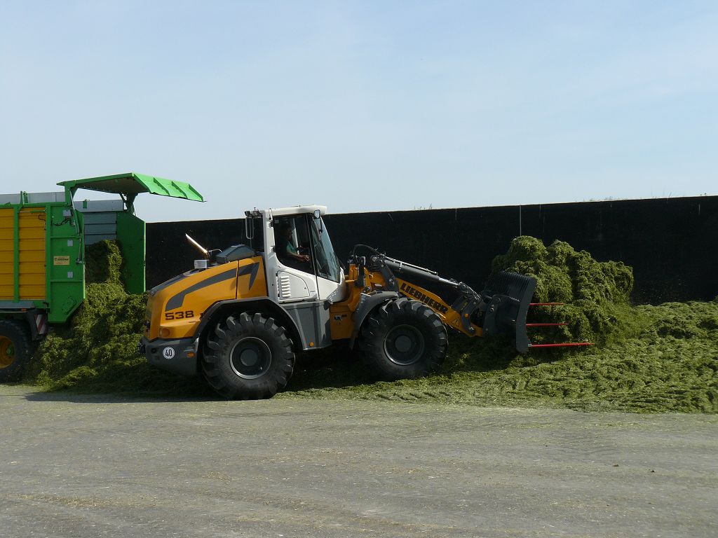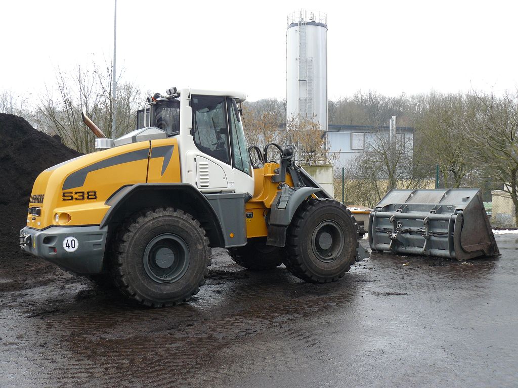 Nach über einem Jahr habe ich mal wieder einen Liebherr L538 P gesichtet, den ich hier gern zeigen möchte. Genau genommen gibt es zwei baugleiche Maschinen, die in zwei verschiedenen Biogasanlagen im Saarland eingestzt werden. Das besondere an der Maschine ist neben der sehr bullig wirkenden Agri Ausstattung und der Zulassung als Land- und Forstwirtschaftliche Zugmaschine, dass beide Maschinen mit Likufix-Schnellwechsler ausgestattet sind. Das ist im Lader-Bereich ja noch nicht ansatzweise so stark vertreten wie bei den Baggern. Dieses Unternehmen schwört allerdings auf den vollhydraulischen Wechsler und möchte ihn nicht mehr missen. Es war auch eines der Hauptargumente, sich für die beiden Maschinen zu entscheiden. So spart man viel Zeit, es fördert die Arbeitssicherheit und natürlich auch ein Stück weit die Natur auf Grund des Wechselns ohne Ölverlust. Die Hochkippschaufel mit gezinktem Niederhalter wird hier als Reißharke genutzt um diese einzusparen. Hier nun die Bilder Teil 1: