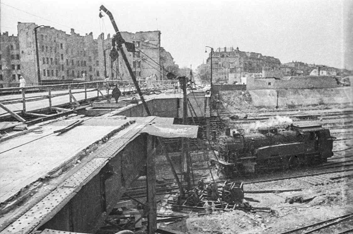 Das letzte Foto zeigt die Instandsetzung der Perleberger Brücke 1945 mit Blick nach Südwesten.