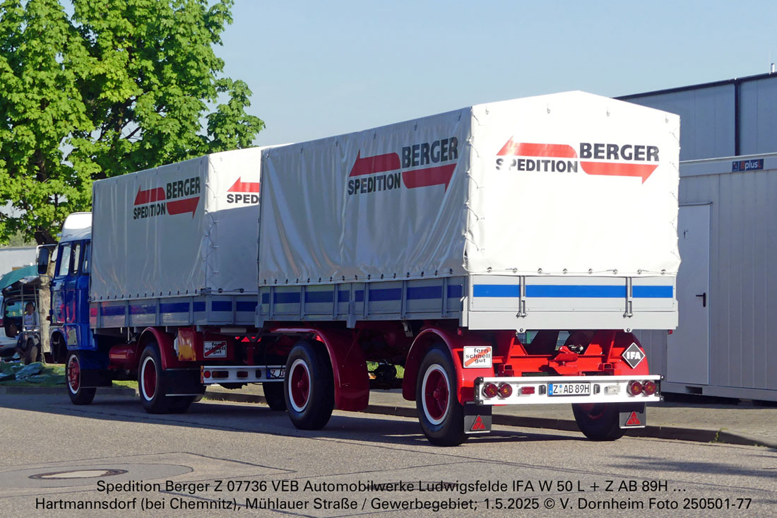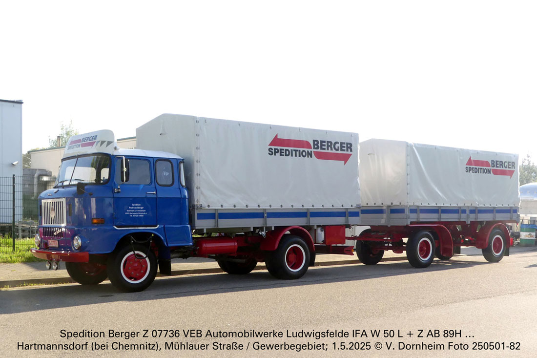 Spedition Berger Z 07736 VEB Automobilwerke Ludwigsfelde IFA W 50 L + Z AB 89H … am 1.5.2025 zum Oldtimertreffen in Hartmannsdorf (bei Chemnitz).