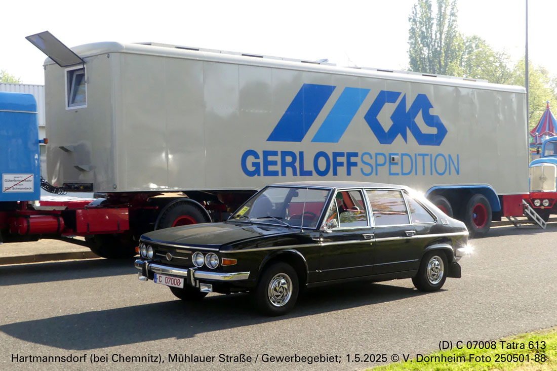 (D) C 07008 Tatra 613 am 1.5.2025 zum Oldtimertreffen in Hartmannsdorf (bei Chemnitz).