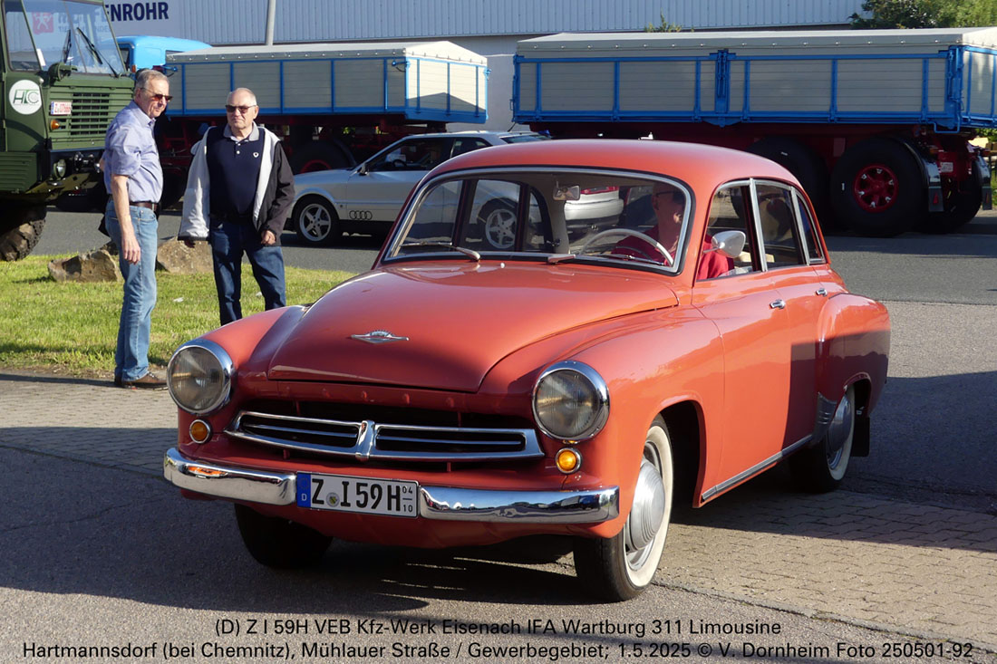 (D) Z I 59H VEB Kfz-Werk Eisenach IFA Wartburg 311 Limousine am 1.5.2025 zum Oldtimertreffen in Hartmannsdorf (bei Chemnitz).