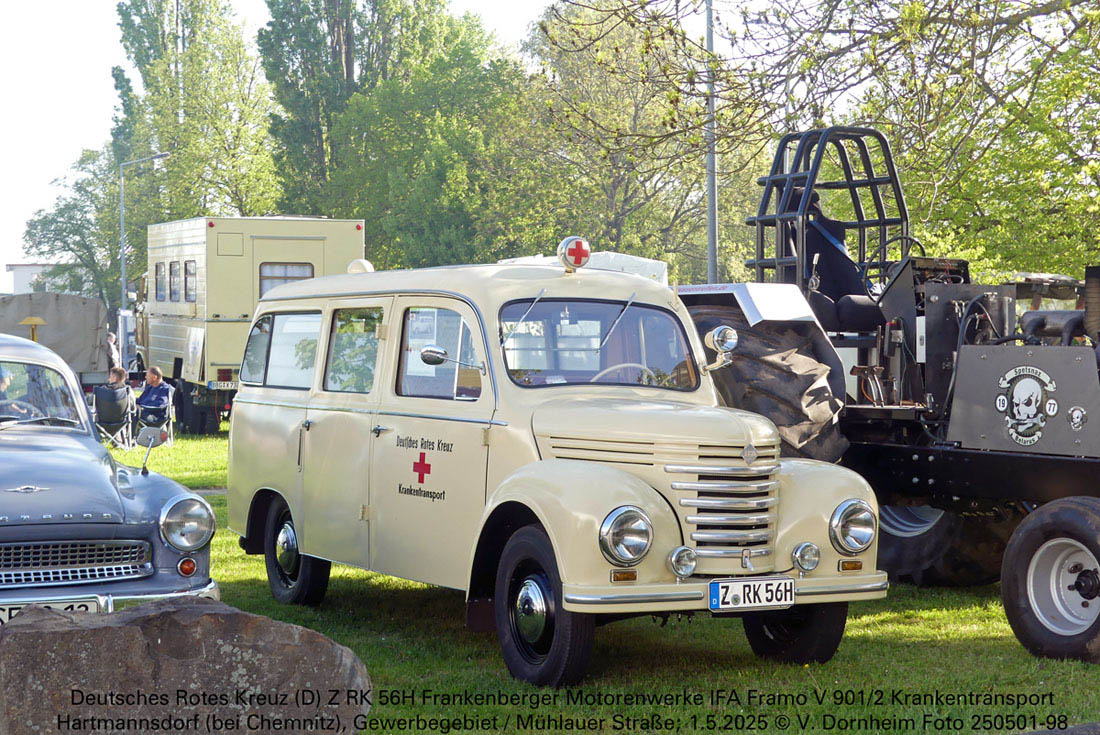 Deutsches Rotes Kreuz (D) Z RK 56H Frankenberger Motorenwerke IFA Framo V 901/2 Krankentransport am 1.5.2025 zum Oldtimertreffen in Hartmannsdorf (bei Chemnitz).