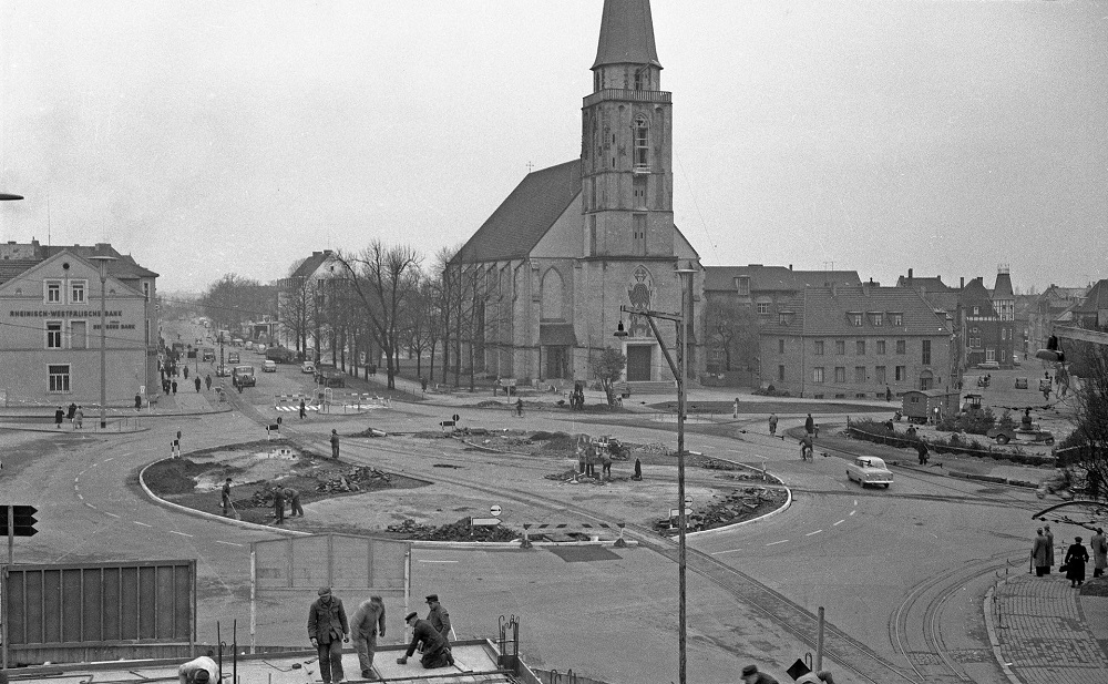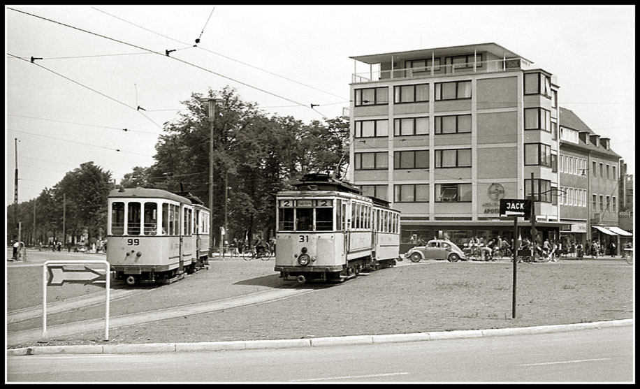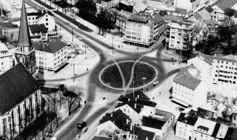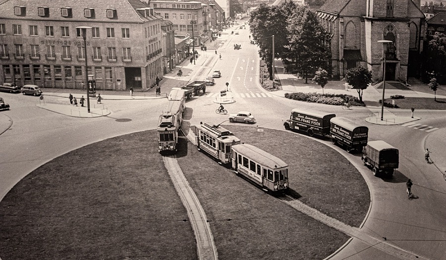 Ist auf dem unteren Bild bereits der Abbau der Gleise zu sehen? Wann war in PB Schluss mit Strassenbahnverkehr? Und der Kreisel ist jetzt komplett verschwunden?